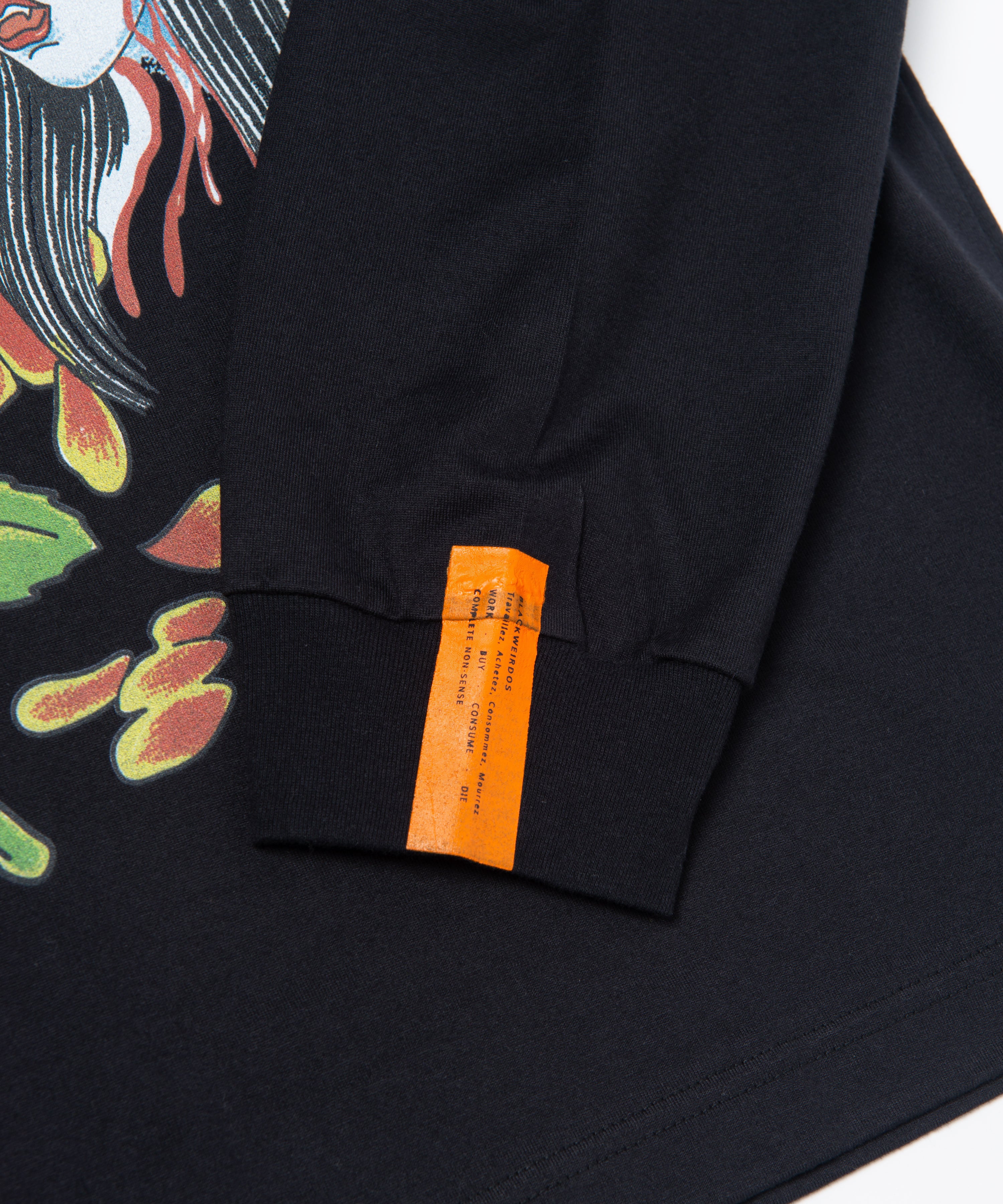 オジー・オズボーンの古着Tから着想をえながらBW独自解釈 して描き起こしたオリジナルタトゥーのロングスリーブTシャツ。背面にはチカーノフォントで「ACID」がプリント。 オリジナルボディー。